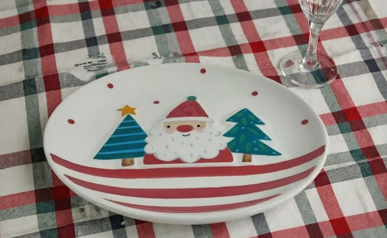 Празнична декорација:Током топлих празника, овај божићни поклон од керамичке посуде можете упарити са мирисним свећама. Док светлост свећа трепери и осветљава рељефног Деда Мраза, чини се да цео тањир оживљава, стварајући атмосферу из снова „бајковито Бадње вече“, испуњавајући ваш дом топлином и романтиком. Алтернативно, поставите украсну плочу испод јелке; постаће визуелна фокусна тачка на вашем столу, привући свачију пажњу и додајући јединствен шарм вашим празничним декорацијама.